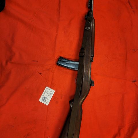 100% original US karabin M1A1 selges for 12000,- pluss frakt. Våpenet er skarpt og krever ervervstillatelse fra politiet. Karabinen ble innlevert til en våpenbutikk i 1989 av en eldre mann fra Sørfylket. Han hadde hatt den siden krigen. Ble ervervet derifra.