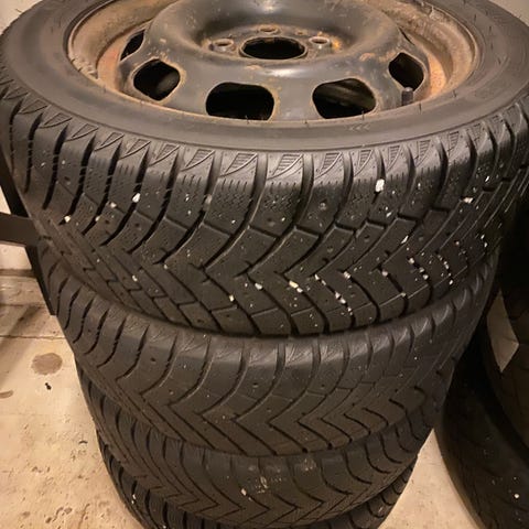 Piggdekk med felg mønsterdybde 7-8 mm. Mangler noen få pigger, men er gode til en ny vinter til. Gi gjerne bud.