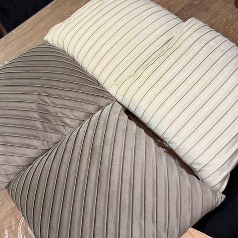 Bilde 2 og 3: Lindø beige putetrekk i velur fra Skeidar 50x50 kr 80,- pr stk