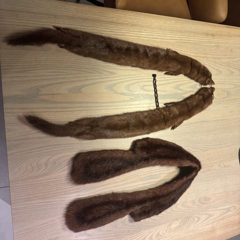Mørk brunt pelsskinn selges. Usikker på hva slags, mink? I meget god stand.