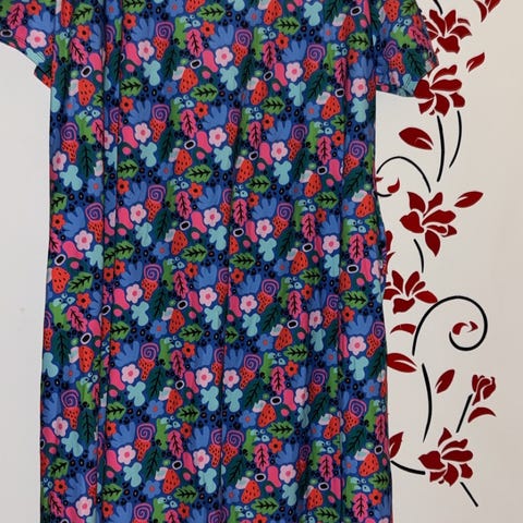 DuMilde kjole i str.M Farger man blir glad av. Fin passform, den svinger ut fra brystet og ned. Med lommer. Kr.400,-