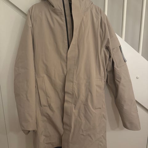 Vanntett med teipede sømmer, tåler en vannsøyle på 20 000! Veldig teknisk, puster godt, har også sporingsbrikke.