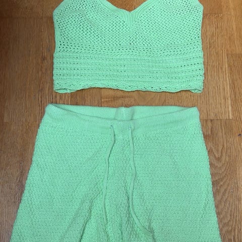 Shortsen er størrelse xxs, men ikke så veldig liten i størrelsen. Toppen er størrelse s.