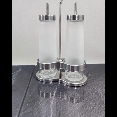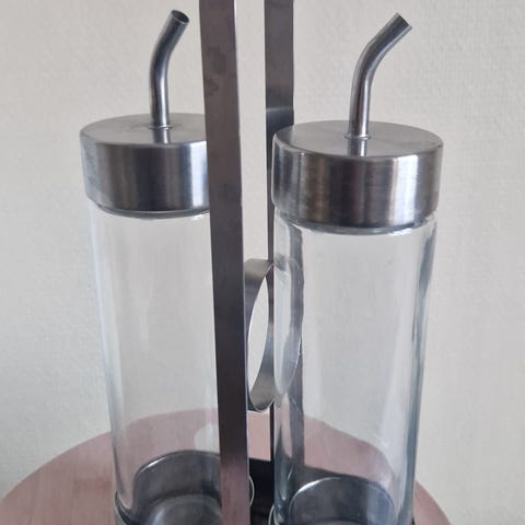 Stilig sett til oppbevaring av olje og edikk.