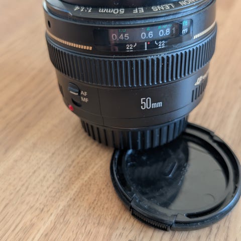 Canon rf 18-45 mm med f4,5-6,3 selges da det ikke brukes lenger. Objektivet ble kjøpt for to år siden, og er i god stand. Nesten alltid brukt med UV filter for å beskytte linsa, som også følger med på kjøpet.