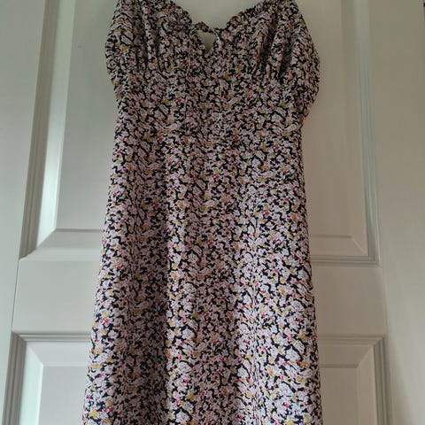 Nydelig og luftig sommerkjole til dame. Usikker på str då eg har kløpt vekk lappen, men er enten M eller L trur eg. Passar fint begge. Kan bli fin med eit pyntebelte også.