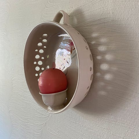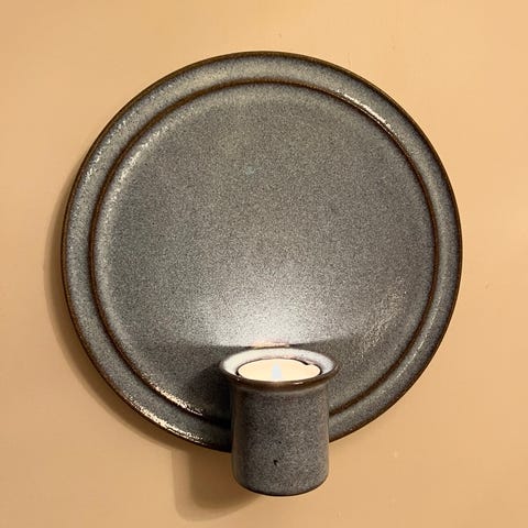 Vegglysestake keramikk laget av Kari Bjørnsrud. Diameter ca 29 cm.
