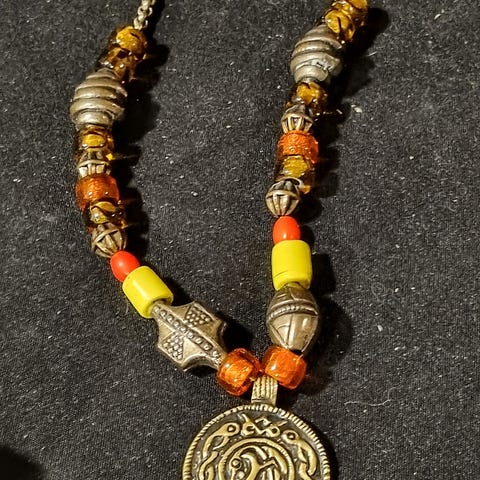 En gammel smykke som aldri ble brukt. Lengde 70 cm.