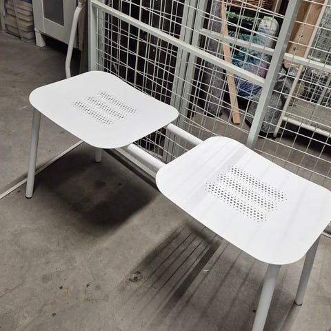 Trapp i hvitt og tre , bobil / campingvogn. Benken er laget i Sverige og har en solid konstruksjon med treplanker og hvitt metallramme. Passer godt til både innendørs og utendørs bruk.