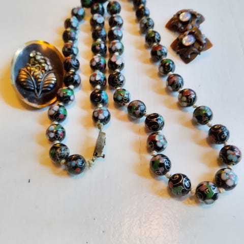 Håndlaget smykker til hals og armbånd. Forskjellige farger og nydelig fine perler.