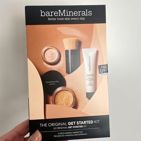 Syntetisk hår, håndtak: tre/aluminium, sminkepung: ull/polyester