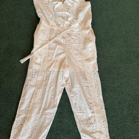 Ubrukt jumpsuit fra Skemo Beach. Str M, men vil si den er mer S. Dessverre for liten til meg. Nydelig blåfarge og kjempefine broderier. Litt hippe stil. Strikk i livet og over brystet. Ny pris 1499.
