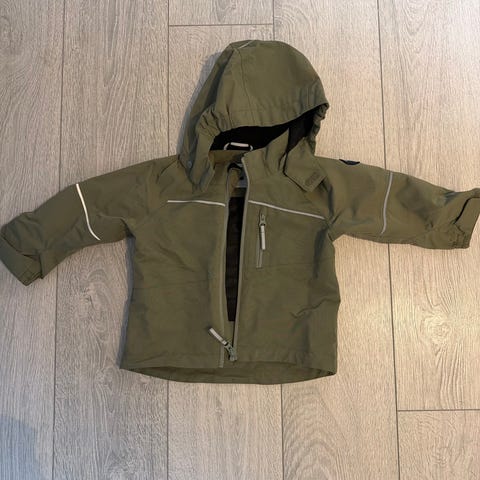 skalljakke str 86 with dark gray color. its a bit bigger in sizes. It has been used for going back and forth to barnehagen.