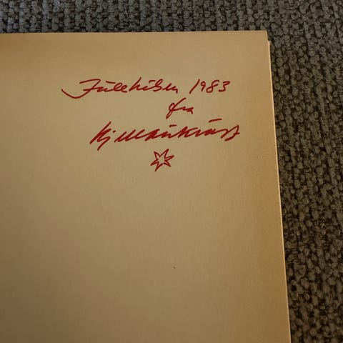 1. utgv. i originalbind med vareomslag. Lengre DEDIKASJON til bok- og kunstsamleren Bredo Grimsgaard.