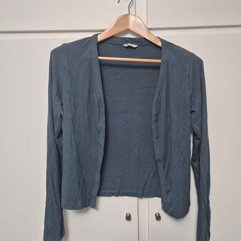 Selger en meget pent brukt cardigan fra cubus. Den er laget av gulltråder. Gullfargen kommer ikke så godt til syne på bilder. Str. M