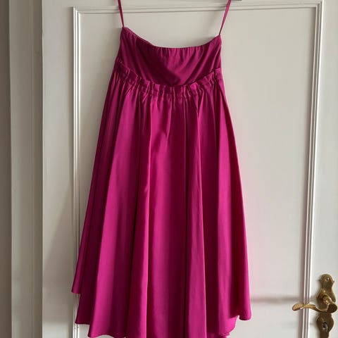 Rød kjole med rysjer og volanger i chiffon. Den er i 100% silke men lappene er tatt ut så prisen er satt deretter. Nydelig sommerkjole til jente eller dame.