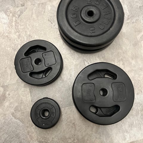 Helt nye vektene 6 stk 5kg selges for 30 per kilo i butikkene koster 59kr per kilo