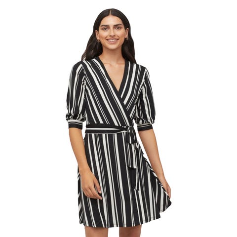 Rett passform, søm i midjen. Omslagsdesign med påsydd bånd. V-hals. Vevet stoff. 100% polyester.
