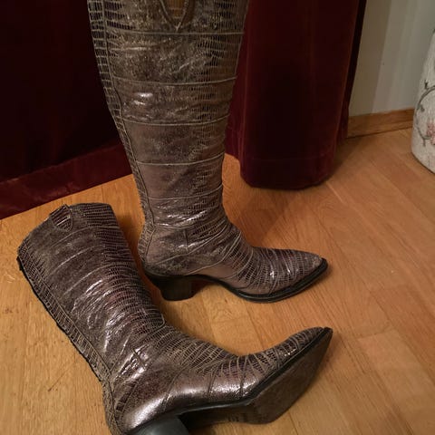 Støvlettene trenger en god omgang med skinnbehandling da de har ligget en stund. Ingen skader og veldig lekker på. Selges med redusert pris. Pris er satt. Kjøper dekker porto.