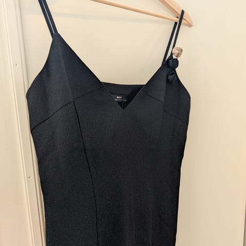 Den lille sort, et kjole bør alle dame har . Engelsk, meget elegant. Aldri tatt i bruk. Nå passer det ikke lenge. i str 38. Helföret med sort . Regulerbar stropper. Jeg er 163 i høyden. Kjolen nå like over knærne.