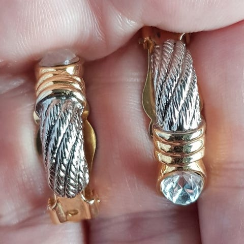 Flott ring i 3 løse deler, kan brukes separat og samlet. 1 grønn og 2 blanke stener. Gulldoublē med 18 K belegg. Ca cm innvendig mål 1. 7 Se bilder og titt på min profil for flere ringer og mye annet. Bruker bare posten Norge for frakt.