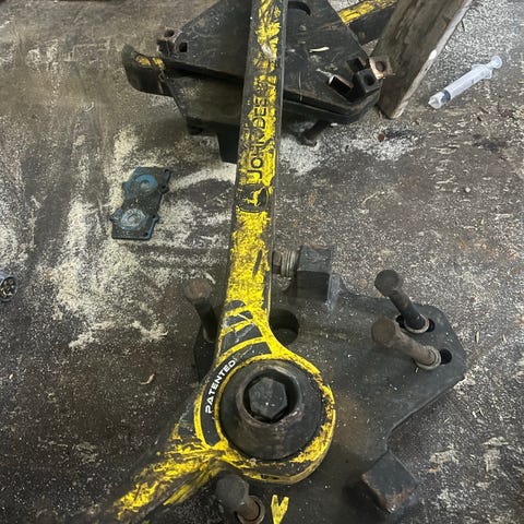 Eldre pallegaffel stått på cat hjullaster 5tonns gaffler.