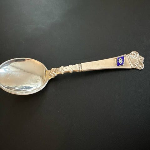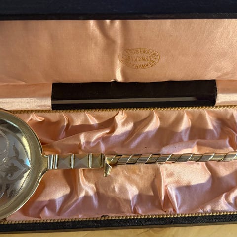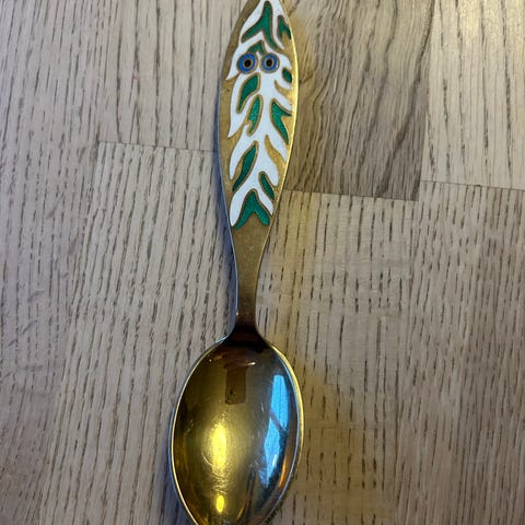 Flott stand, har en liten slitasje i forgylling på undersiden av skjeen. Super julegave til den som har alt?