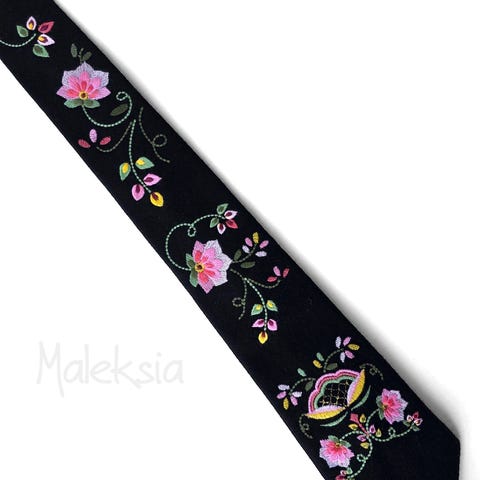Bunadsslips, inspirert av Gudbrandsdalens festbunad. Slipset er nøye designet til et maskinbroderi og brodert på bunadsull. Det er montert og sydd sammen for hånd.