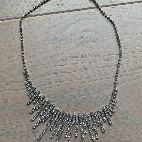 Sølvfarget strass rhinestone diamant halskjede smykke