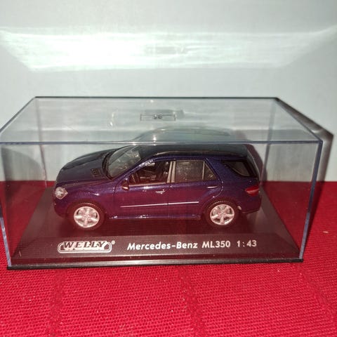 Mercedes-Benz CLK modellbil i skala 1:18. Modellen er laget av metall og har en blå farge. Detaljene inkluderer en åpnebar motorhjelm som viser motoren, samt dører som kan åpnes. Perfekt for samlere og bilentusiaster.