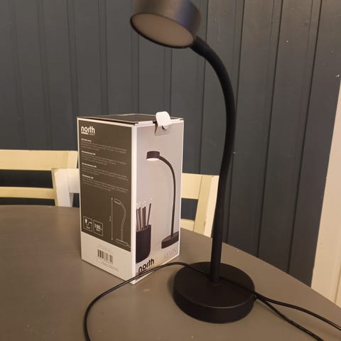 Pent brukt skrivebordslampe (E14) selges da den ikke lenger brukes pga bruk av annen belysning. Mangler tappen på topp av skjerm, men den trenger man ikke da skjermen aldri blir varm (ihvertfall ikke med sparepære/LED). Mer informasjon om produktet finner man her: