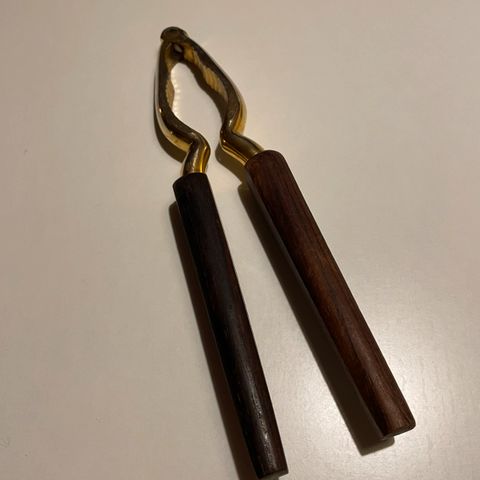 Fin retro nøtteknekker med Teak/palisander treskaft 17,5 cm pent brukt kr 125