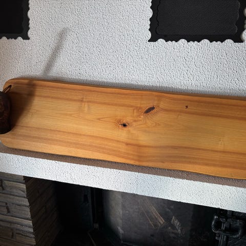Skjærefjøl i eik med kniv og serveringsgaffel