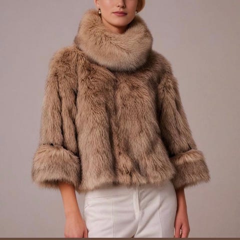 Superkul kåpe / fuskepels fra Marlene Birger med avtagbart belte.