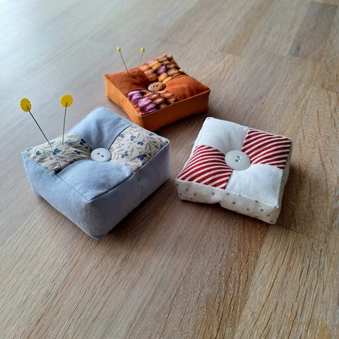 En spesiell nål pute, som har mål bånd, i lommen og samle på sy nåler og andre nåler