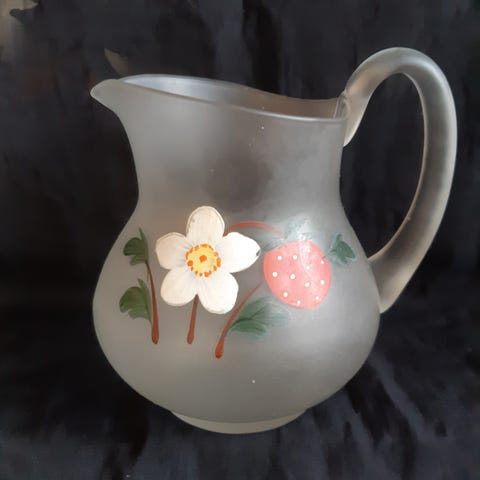 Keramikk mugge med blomst og blad ca 13 cm høy. Mugge- lilje- blomst- keramikk-kanne