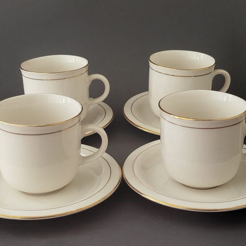 Ti kaffe/mokka kopper H: 5,5 cm D:6,5 cm med skåler D: 12,5 cm i serviset Old Colonial Line fra Shinepukur. Alle de 20 delene er i fin stand, uten skader, med intakt gull og blank glasur. Kr. 100,- pr. sett (kopp+skål).