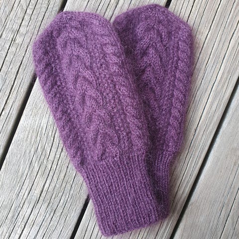 Flettevottene er strikket av én tråd Double Sunday (100% merinoull) fra Sandnes Garn.
