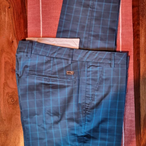 Polyester 5% elastin. Elegant bukse, strl. 38×32.