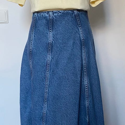 Veldig fin, lett sommerkjole fra Ellos i str.42-44. Jeg ville sagt str.XL. Kjolen er litt lengre bak og har litt åpen rygg. Den var pent brukt og har ingen feil.