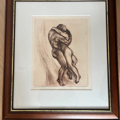 Litografi av Per Ung. Mål uten ramme; 46 x 53 cm, inkl. ramme; 74 x 69 cm.