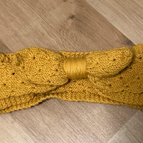 Håndstrikket pannebånd i sennepsgul 💛✨