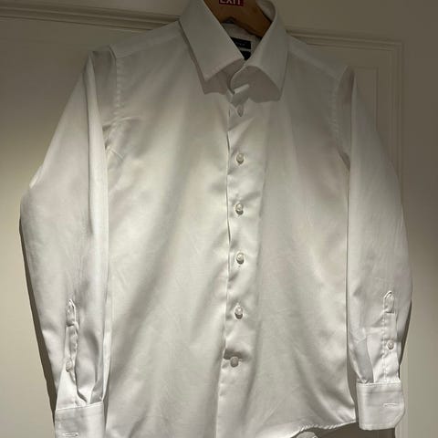 Pent brukt Vannucci skjorte i str. 6/7. Ny pris er 399,- denne selges for 200,- Den er litt krøllete etter å ha ligget i skapet. Det står "no iron", men det er ikke noe problem å stryke over skjorten med strykejern på lav temperatur.