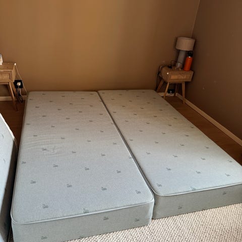 Sengen er både medium og fast. Både overmadrass og trekk til sengen er nyvasket. Ingen flekker!