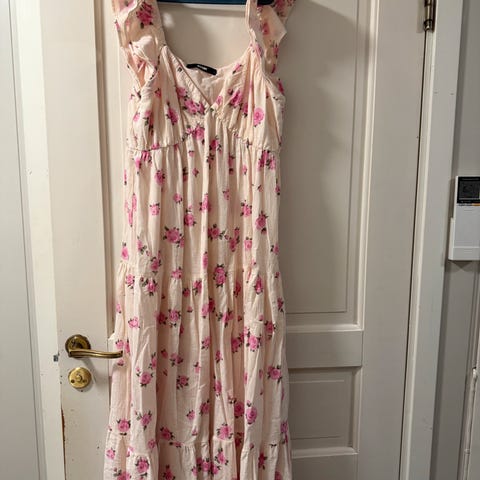 Selger denne lange kjolen i str L, litt vanskelig å se på bildene men kjolen er blålig, selges for kr 100.