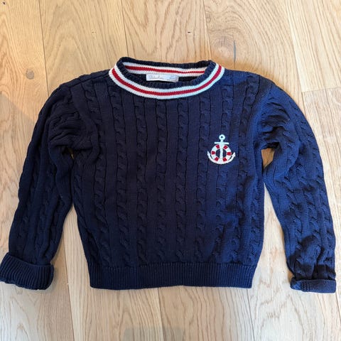 Selger en pent brukt ribbestrikket jakke fra Tommy Hilfiger med knapper foran og stjerner bak på ryggen. Pent brukt, fremstår som nesten ny. Ingen merker eller slitasje. Tøff jakke til en liten tøffing 😊