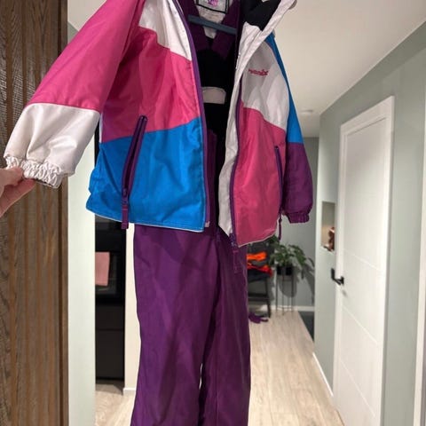 Brukt av et barn i en sesong. Noe bruksslitasje i form av litt nuppete stoff på enkelte små partier. Se siste bilde for å se slitasjemerk.