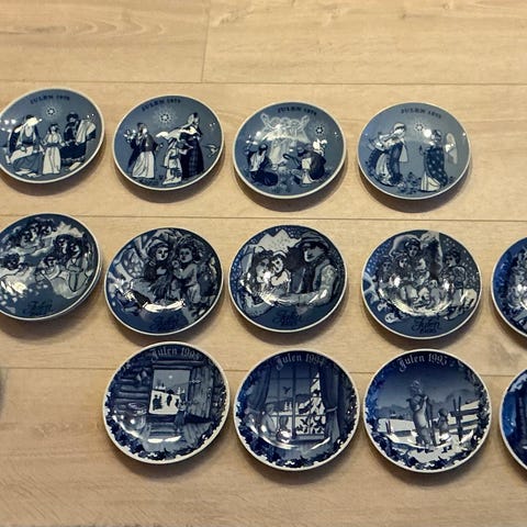 2 stk juleplatter fra Porsgrund Porselensfabrikk. Julen 1976; Jesus i tempelet og Julen 1977; Peters fiskefangst. Limited Edition Series. Diameter 17 cm. Kr.100 pr. stk