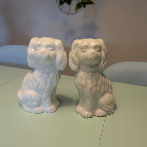 Vintage keramiske mantelhunder fra ca 1960 tallet. Hele og pene. Hundene er uadskillige, selges samlet.