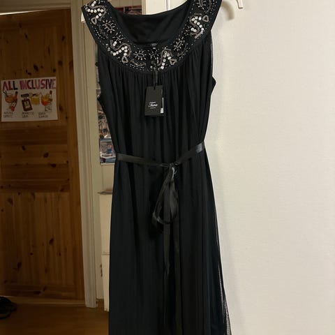 Ny kjole med paljettdetaljer, sort, str 38,